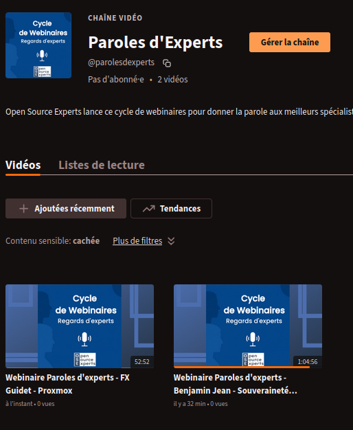Et lien vers la chaîne : Chaîne Paroles d’experts sur notre instance Peertube, qui regroupe toutes les vidéos.